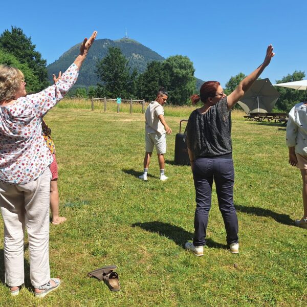 Séances adaptées : conscience du corps, respirer comme une seule cellule, stabilité entre terre et ciel